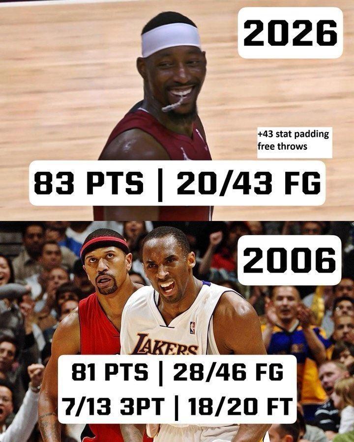 阿德巴约的83分让人感到恶心,这样的比赛,这样的闹剧,这叫遗臭万年,没有人会再去回味这场比赛,毫无精彩可言。但十几年之后,二十年之后,人们都会拿出科比的81分之战来回看,因为那是经典,这就叫流芳千古。”